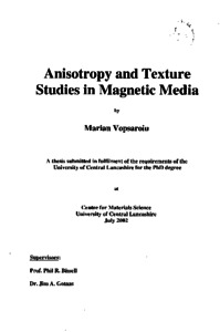 Vopsaroiu, Marian (2002) Anisotropy and texture studies in magnetic media. Doctoral thesis, University of Central Lancashire.
