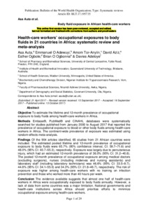 Health-care workers’ occupational exposures to body fluids in 21 countries in Africa: systematic review and meta-analysis.