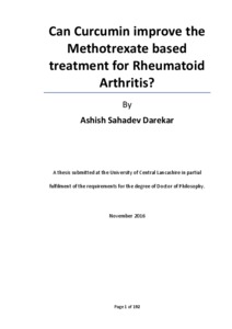 Darekar, Ashish Sahadev (2016) Can curcumin improve the methotrexate based treatment for rheumatoid arthritis? Doctoral thesis, University of Central Lancashire.