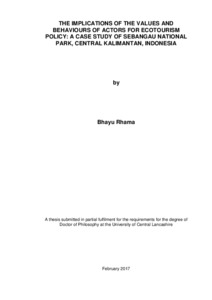 Rhama, Bhayu (2017) The implications of the values and behaviours of actors for ecotourism policy: A case study of Sebangau National Park, Central Kalimantan, Indonesia. Doctoral thesis, University of Central Lancashire.