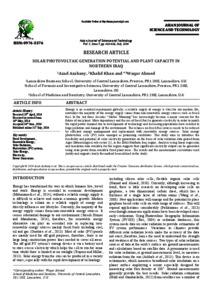 Solar photovoltaic generation potential and plant capactiy in Northern Iraq