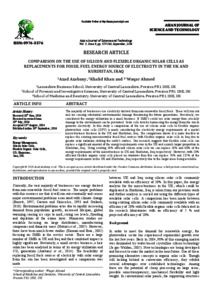 micro-business business in the UK and Kurdistan, Iraq. The comparison shows it is more feasible to replace the existing non-renewable fossil fuel sources with flexible organic solar cells in Iraq due to greater solar radiation striking the earth’s surface. Our research suggests that flexible solar cells can replace a significant amount of the energy requirements even in the UK and a much larger proportion in Kurdistan, Iraq. Using existing 20% efficient silicon solar cells we can replace 28% and 88% of the energy requirements of the microbusiness in UK and Kurdistan, Iraq respectively. However, with 20% efficient flexible organic solar cells placed on windows then this can replace 78% and 235% of the energy requirements in the UK and Kurdistan, Iraq respectively due to the larger areas being available.