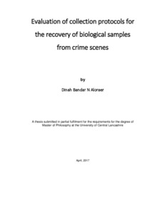 Aloraer, Dinah Bandar n (2017) Evaluation of collection protocols for the recovery of biological samples from crime scenes. Masters thesis, University of Central Lancashire.