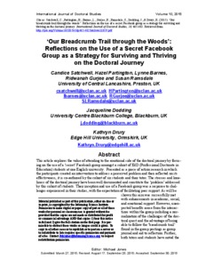 ‘Our Breadcrumb Trail through the Woods’: Reflections on the Use of a Secret Facebook Group as a Strategy for Surviving and Thriving on the Doctoral Journey.