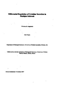 Fragkoulis, Nikolaos D. (2007) Differential regulation of cytokine secretion in multiple sclerosis. Doctoral thesis, University of Central Lancashire.