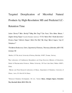 Chervin, Justine, Stierhof, Marc, Tong, Ming Him, Peace, Doe, Hansen, Kine Østnes, Urgast, Dagmar Solveig, Andersen, Jeanette Hammer, Yu, Yi, Ebel, Rainer et al (2017) Targeted Dereplication of Microbial Natural Products by High-Resolution MS and Predicted LC Retention Time. Journal of Natural Products, 80 (5). pp. 1370-1377. ISSN 0163-3864
