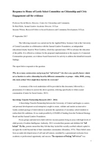 Response to House of Lords Select Committee for Citizenship and Engagement Call for Evidence (CCE0157).