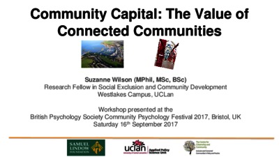 In: British Psychological Society Community Psychology Festival 2017, 15th to 16th September 2017, Arnolfini Centre for Contemporary Art, Bristol.