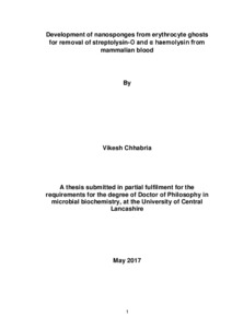 Development of nanosponges from erythrocyte ghosts for removal of streptolysin-O and α haemolysin from mammalian blood.