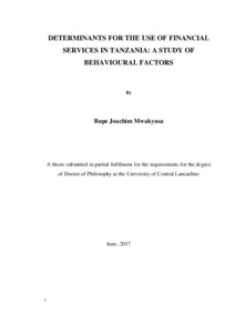 Mwakyusa, Bupe Joachim (2017) Determinants for the use of financial services in Tanzania: A study of behavioural factors. Doctoral thesis, University of Central Lancashire.