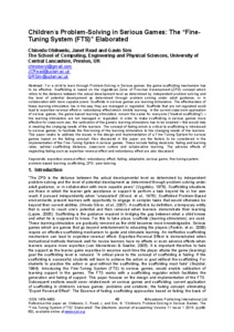 Children's problem-solving in serious games: The "Fine-Tuning System (FTS)" elaborated.