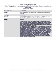 Dobson, Jill (2017) Providing high-quality care at the end of life: the role of education and guidance. British Journal of Nursing, 26 (20). pp. 1116-1120. ISSN 0966-0461