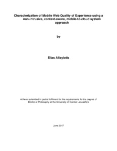 Allayiotis, Elias (2017) Characterization of Mobile Web Quality of Experience using a non-intrusive, context-aware, mobile-to-cloud system approach. Doctoral thesis, University of Central Lancashire.