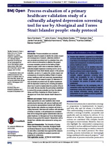 Process evaluation of a primary healthcare validation study of a culturally adapted depression screening tool for use by Aboriginal and Torres Strait Islander people: study protocol.