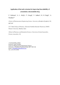 Application of hot melt extrusion for improving bioavailability of artemisinin a thermolabile drug.