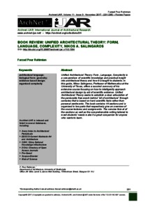 Book Review: Unified architectural theory: Form, language, complexity, Nikos A. Salingaros.