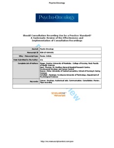 Should Consultation Recording Use be a Practice Standard? A Systematic Review of the Effectiveness and Implementation of Consultation Recordings.