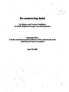 Moro, Simonetta (2003) Re-constructing Babel: The history and creative possibilities of a myth, explored through text and installation. Doctoral thesis, University of Central Lancashire.