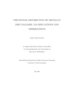Sancho, Maider orcid iconORCID: 0000-0003-3546-4334 (2017) The spatial distribution of metals in disc galaxies, via simulations and observations. Doctoral thesis, University of Central Lancashire.