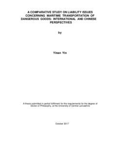 Yin, Yinan (2017) A comparative study on liability issues concerning maritime transportation of dangerous goods: International and Chinese perspectives. Doctoral thesis, University of Central Lancashire.