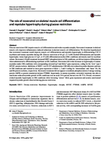 The role of resveratrol on skeletal muscle cell differentiation and myotube hypertrophy during glucose restriction.