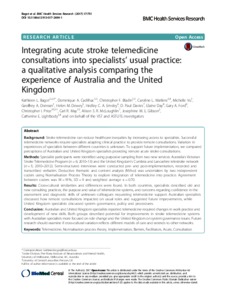 Integrating acute stroke telemedicine consultations into specialists' usual practice: a qualitative analysis comparing the experience of Australia and the United Kingdom.