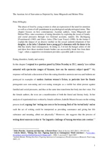 The abuse of food by young women is often an expression of the need for attention as well as a form of self-punishment in psychological and physiological terms. This chapter focuses on how contemporary Austrian authors, Anna Mitgutsch and Helene Flöss, raise awareness of eating disorders by exploring the issues of family and social pressures through two fictional accounts, namely Die Züchtigung [Punishment] (1985) and Dürre Jahre [The Lean Years] (1998). In the former I explain the impact of an abusive mother on the sexual underdevelopment of her daughter; in the latter I illustrate how a young girl’s obsession with the desire to be thin has nearly fatal consequences. In doing so, I revisit the hunger artists of old and show how these modern female bodies can successfully break free from their ‘cage’, when a supportive environment provides a possible path to recovery.