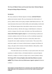 The Nexus of Political Violence and Economic Deprivation: Pakistani Migrants Disrupt the Refugee / Migrant Dichotomy.
