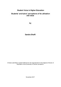 Shaffi, Sandra (2017) Student Voice in Higher Education: Students' and Tutors' Perceptions of its Utilisation and Purpose. Doctoral thesis, University of Central Lancashire.