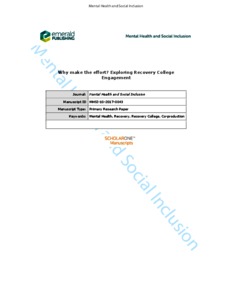 Purpose - Whilst there is growing evidence to suggest that the Recovery College (RC) environment supports students towards their mental health recovery (Meddings et al., 2015b), students’ initial motivations for engagement, alongside factors that may hinder or support attendance, have yet to be exclusively explored.