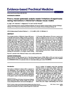 From a mouse: systematic analysis reveals limitations of experiments testing interventions in Alzheimer's disease mouse models.
