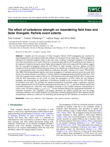 Laitinen, Timo Lauri mikael orcid iconORCID: 0000-0002-7719-7783, Effenberger, Frederic, Kopp, Andreas and Dalla, Silvia orcid iconORCID: 0000-0002-7837-5780 (2018) The effect of turbulence strength on meandering field lines and Solar Energetic Particle event extents. Journal of Space Weather and Space Climate, 8 (A13).