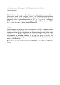 A critical assessment of the impact of the 2000 equality directives on Greece.