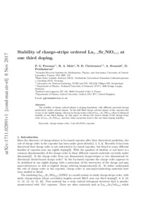 order in La2−xSrxNiO4+δ, and how these properties lead to the one third doping stability.
