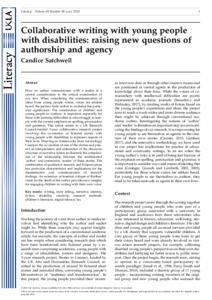 Satchwell, Candice orcid iconORCID: 0000-0001-8111-818X (2019) Collaborative writing with young people with disabilities: raising new questions of authorship and agency. Literacy, 53 (2). pp. 77-85. ISSN 1741-4350