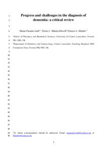 Paraskevaidi, Maria, Martin-Hirsch, Pierre L. and Martin, Francis L orcid iconORCID: 0000-0001-8562-4944 (2018) Progress and Challenges in the Diagnosis of Dementia: A Critical Review. ACS Chemical Neuroscience, 8 (9). pp. 446-461. ISSN 1948-7193