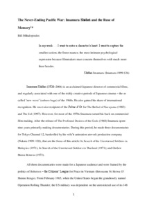The Never-Ending Pacific War: Imamura Shohei on the Ruse of Memory.