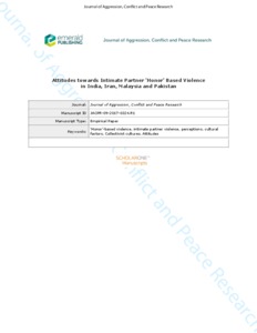 Attitudes toward intimate partner “honor”-based violence in India, Iran, Malaysia and Pakistan.