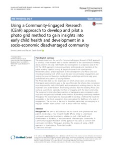 Lowrie, Emma Louise and Tyrrell-Smith, Rachel (2017) Using a community-engaged research (CEnR) approach to develop and pilot a photo grid method to gain insights into early child health and development in a socio-economic disadvantaged community. Research Involvement and Engagement, 3 (29).