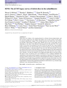 Holland, Wayne S., Matthews, Brenda C., Kennedy, Grant M., Greaves, Jane S., Wyatt, Mark C., Booth, Mark, Bastien, Pierre, Bryden, Geoff, Butner, Harold et al (2017) SONS: The JCMT legacy survey of debris discs in the submillimetre. Monthly Notices of the Royal Astronomical Society, 470 (3). pp. 3606-3663. ISSN 0035-8711
