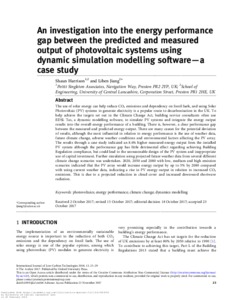 An investigation into the energy performance gap between the predicted and measured output of photovoltaic systems using dynamic simulation modelling software—a case study