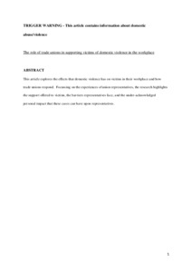 This article explores the effects that domestic violence has on victims in their workplace and how trade unions respond. Focussing on the experiences of union representatives, the research highlights the support offered to victims, the barriers representatives face and the under-acknowledged personal impact that these cases can have upon representatives.