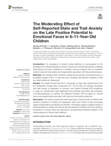 Chronaki, Georgia orcid iconORCID: 0000-0001-5146-2510, Broyd, Samantha, Garner, Matthew, Nicholas, Benikos, Thompson, Margaret, Sonuga-Barke, Edmund and Hadwin, Julie (2018) The Moderating Effect of Self-Reported State and Trait Anxiety on the Late Positive Potential to Emotional Faces in 6–11-Year-Old Children. Frontiers in Psychology, 9 (125).