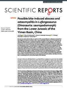 Possible bite-induced abscess and osteomyelitis in Lufengosaurus (Dinosauria: sauropodomorph) from the Lower Jurassic of the Yimen Basin, China.