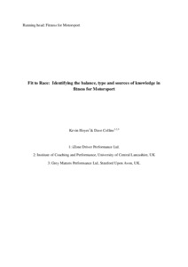 Fit to Race: Identifying the balance, type and sources of knowledge in fitness for Motorsport.