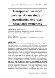Transparent password policies: A case study of investigating end-user situational awareness.
