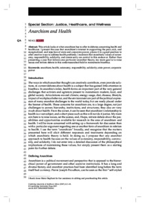 This article looks at what anarchism has to offer in debates concerning health and healthcare. I present the case that anarchism’s interest in supporting the poor, sick, and marginalized, and rejection of state and corporate power, places it in a good position to offer creative ways to address health problems. I maintain that anarchistic values of autonomy, responsibility, solidarity, and community are central to this endeavor. Rather than presenting a case that follows one particular anarchist theory, my main goal is to raise issues and initiate debate in this underresearched field in mainstream bioethics.