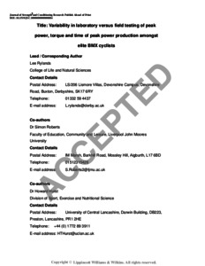 Variability in Laboratory vs. Field Testing of Peak Power, Torque, and Time of Peak Power Production Among Elite Bicycle Motocross Cyclists.