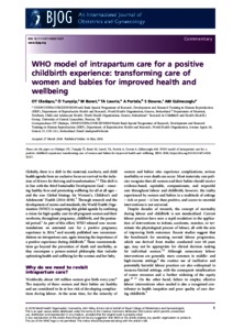 WHO model of intrapartum care for a positive childbirth experience: Transforming care of women and babies for improved health and well-being.