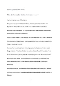 Oral health after a stroke is important from a social as well as physical health perspective, yet tends to be neglected. Multidisciplinary research is needed to improve understanding of the complexities associated with delivering good oral care for stroke patients. Also to provide the evidence for practice that will improve wellbeing and may reduce risk of aspiration pneumonia and other serious sequelae.